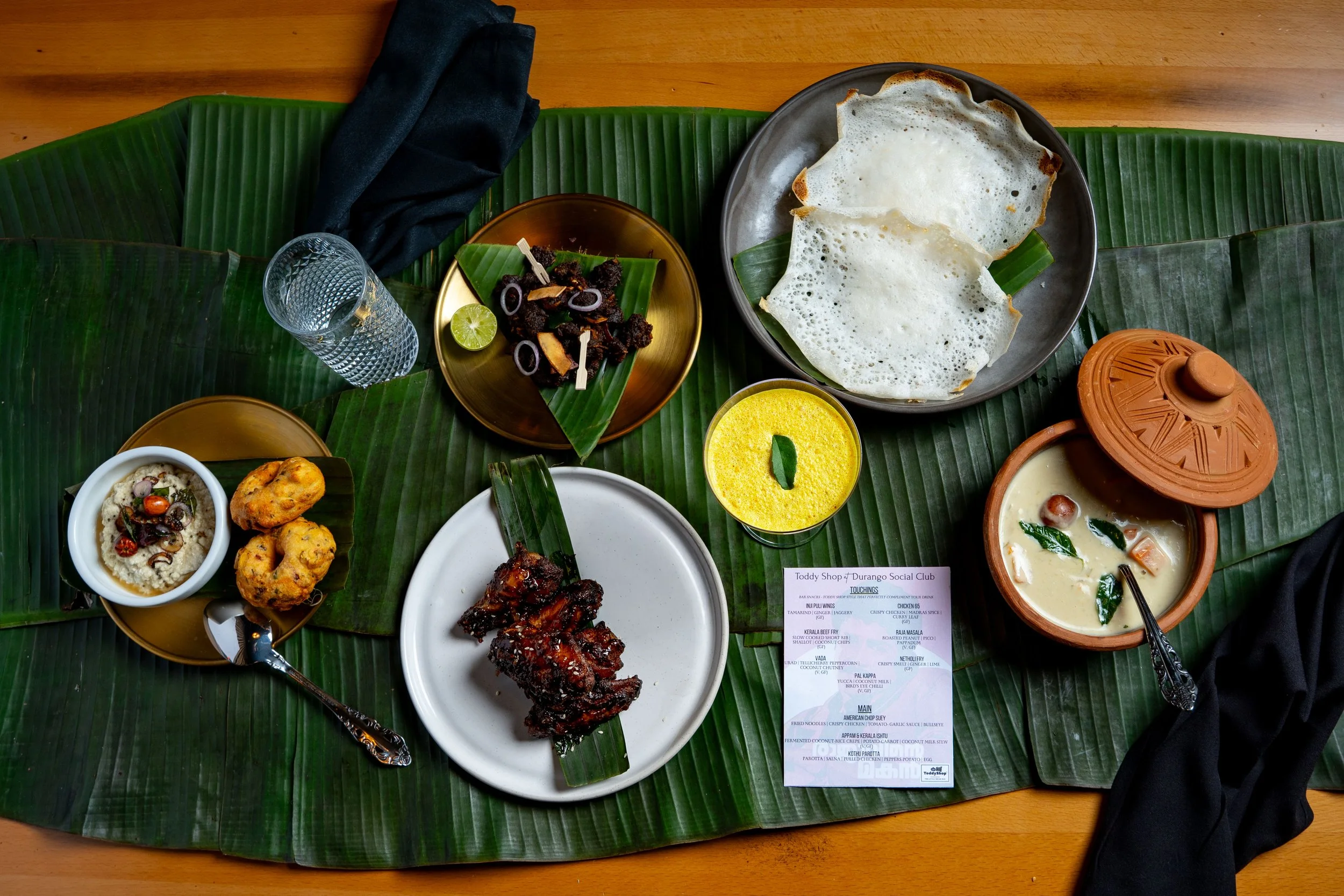 Toddy Shop® is currently in residence at Durango Social Club on Thursday and Friday nights from 5–9 PM, reimagining the traditional toddy shop experience with craveable bar snacks and shareable plates rooted in Kerala tradition.